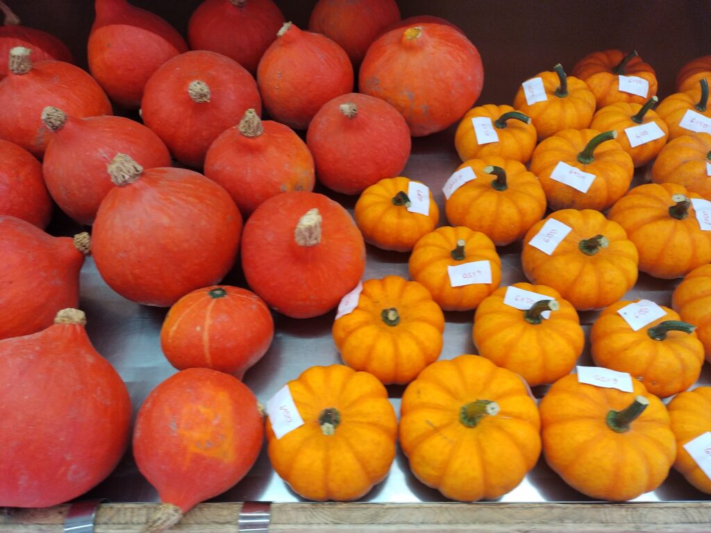 Les courges commencent à colorer l'étal des légumes, aux côtés des choux, poireaux, carottes, panais et autres légumes d'automne.